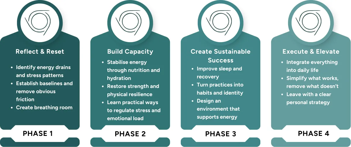 HEAL is a structured 12-week programme designed to rebuild the foundations your body relies on to sustain performance under long-term pressure.